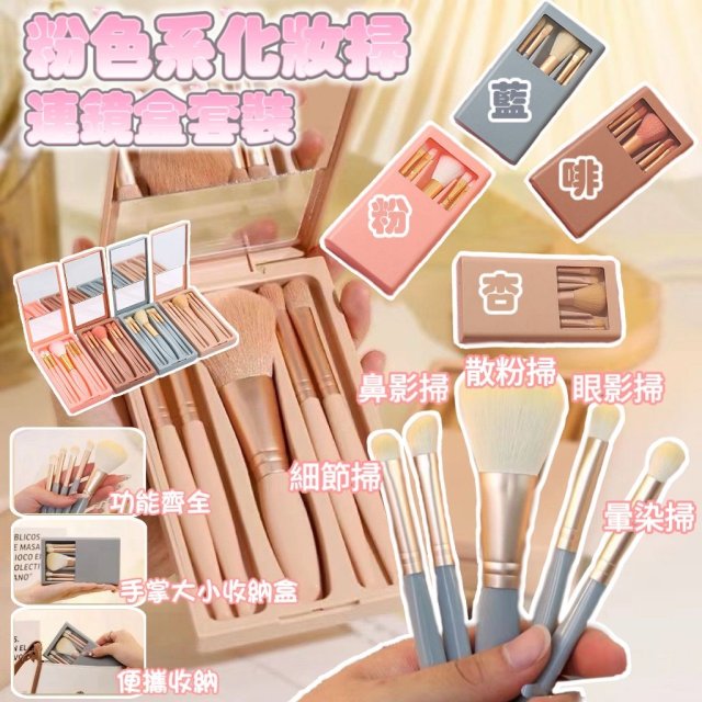 (現貨) #5301 🌈粉色系化妝掃連鏡盒套裝(一套5支)💕