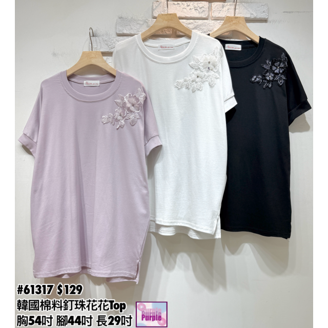 (訂貨大約20天) #61317 韓國棉料釘珠花花Top (胸54吋 腳44吋 長29吋)