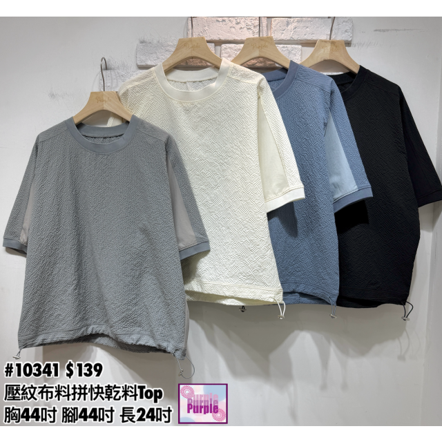 (訂貨約20天) #10341 壓紋布料拼快乾料Top (胸44吋 腳44吋 長24吋)
