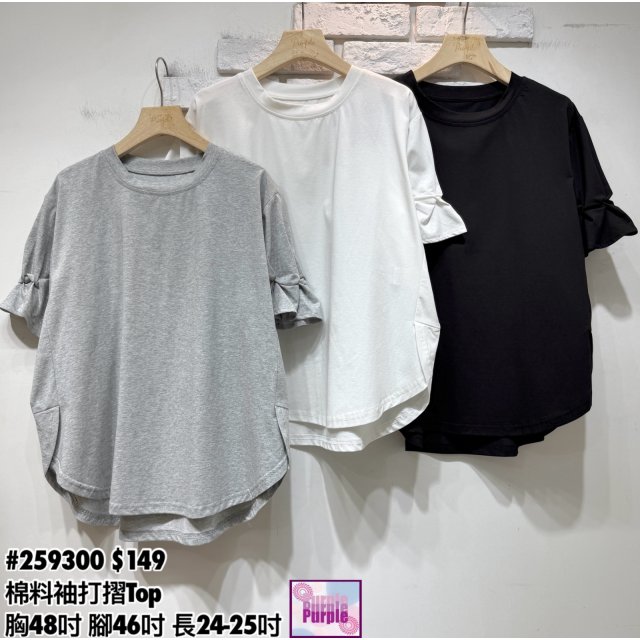 (訂貨約20天) #259300 棉料袖打摺Top (胸48吋 腳46吋 長24-25吋)