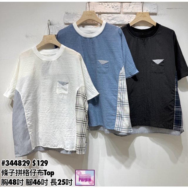 (訂貨約20天) #344829 條子拼格仔布Top (胸48吋 腳46吋 長25吋)