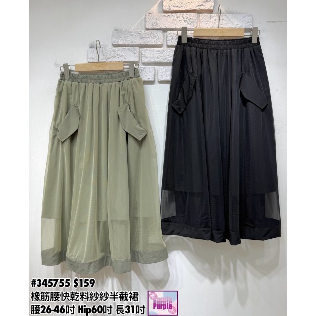 (訂貨約20天) #345755 橡筋腰快乾料紗紗半截裙 (腰26-46吋 Hip60吋 長31吋)