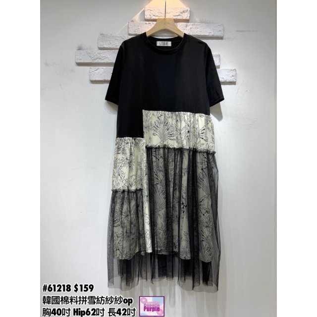 (訂貨約20天) #61218 韓國棉料拼雪紡紗紗連身裙 (胸40吋 Hip62吋 長42吋)
