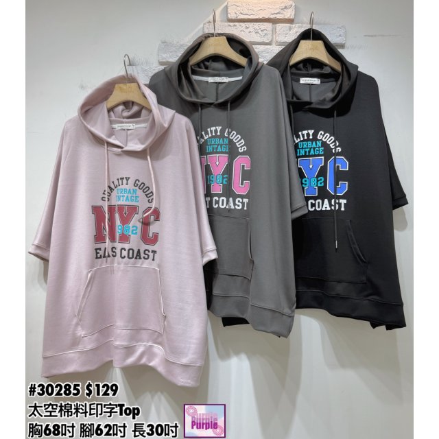 (訂貨約20天) #30285 太空棉料印字Top (胸68吋 腳62吋 長30吋)