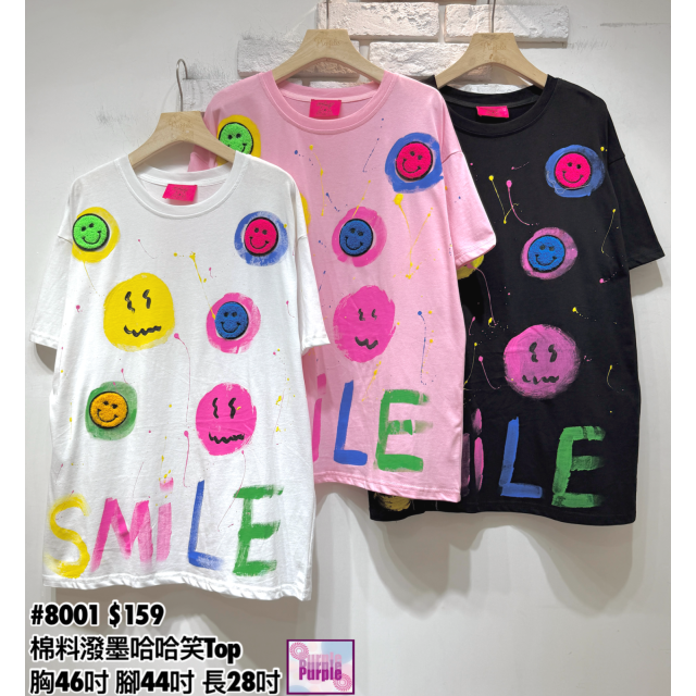 (訂貨約20天) #8001 棉料潑墨哈哈笑Top (胸46吋 腳44吋 長28吋)
