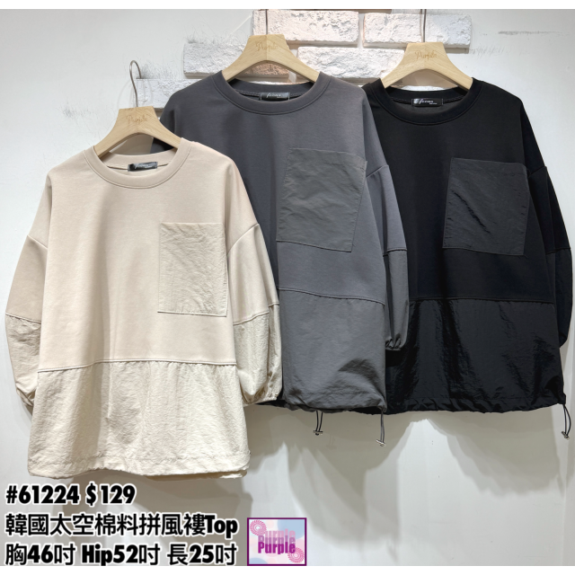 (訂貨約20天) #61224 韓國太空棉料拼風褸料Top (胸46吋 Hip52吋 長25吋)