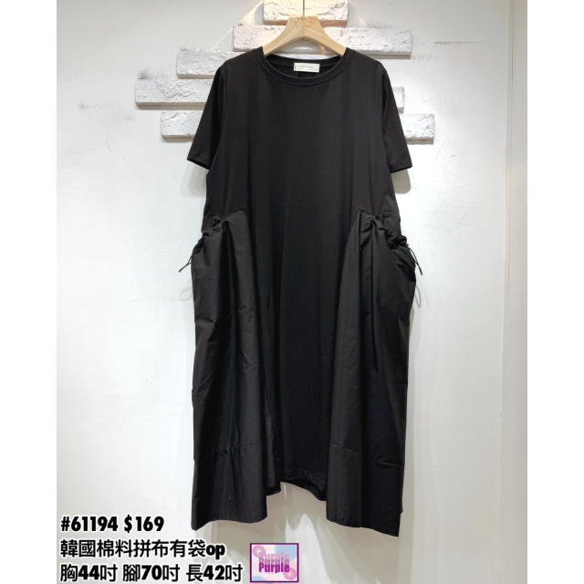 (訂貨約20天) #61194 韓國棉料拼布有袋連身裙 (胸44吋 腳70吋 長42吋)