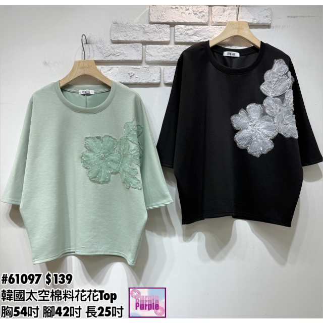 (訂貨約20天) #61097 韓國太空棉料釘珠花花Top (胸54吋 腳42吋 長25吋)