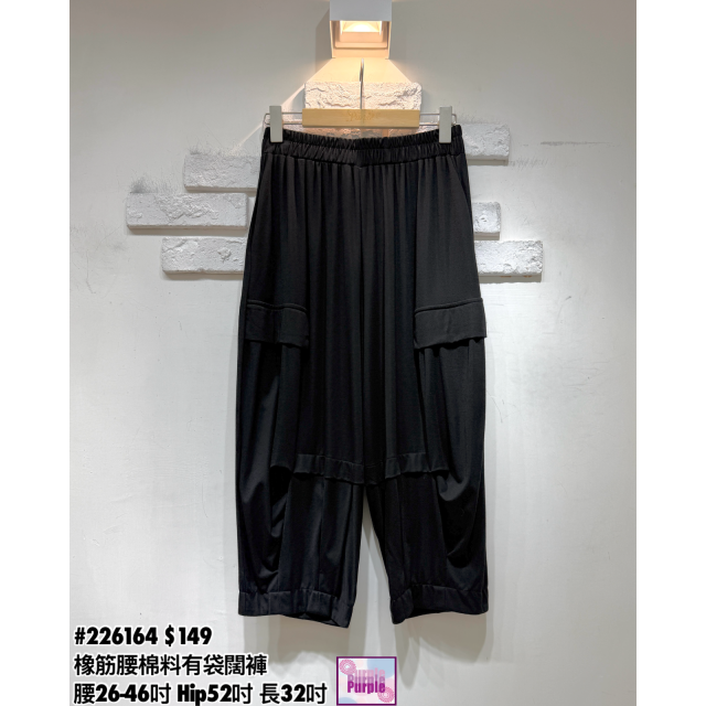 (訂貨約20天) #226164 橡筋腰棉料有袋闊褲 (腰26-46吋 Hip52吋 長32吋)
