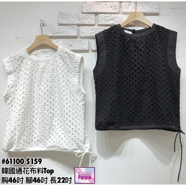 (訂貨約20天) #61100 韓國通花布料Top (胸46吋 腳46吋 長22吋)