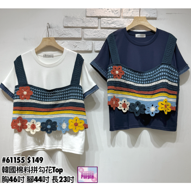 (訂貨約20天) #61155 韓國棉料拼勾花Top (胸46吋 腳44吋 長23吋)