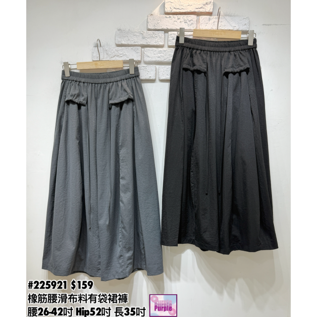(訂貨約20天) #225921 橡筋腰滑布料有袋裙褲 (腰26-42吋 Hip52吋 長35吋)