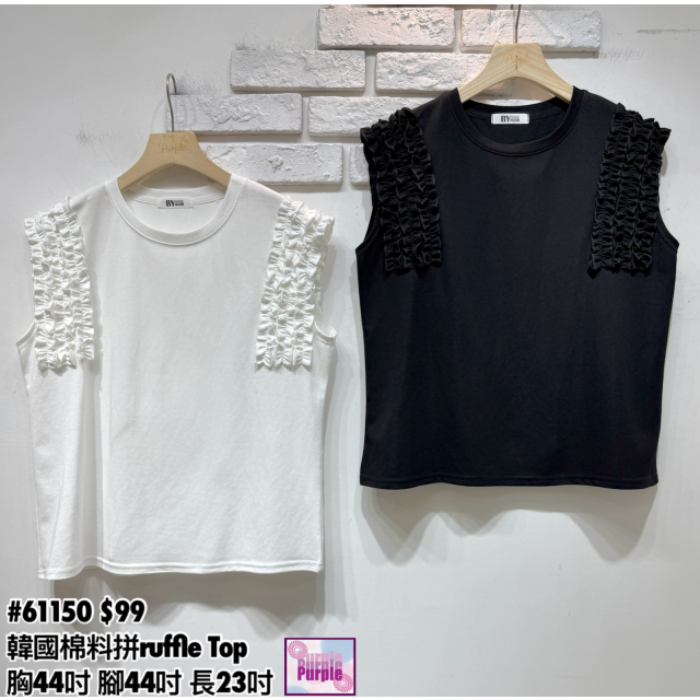 (訂貨約20天) #61150 韓國棉料拼ruffle Top (胸44吋 腳44吋 長23吋)