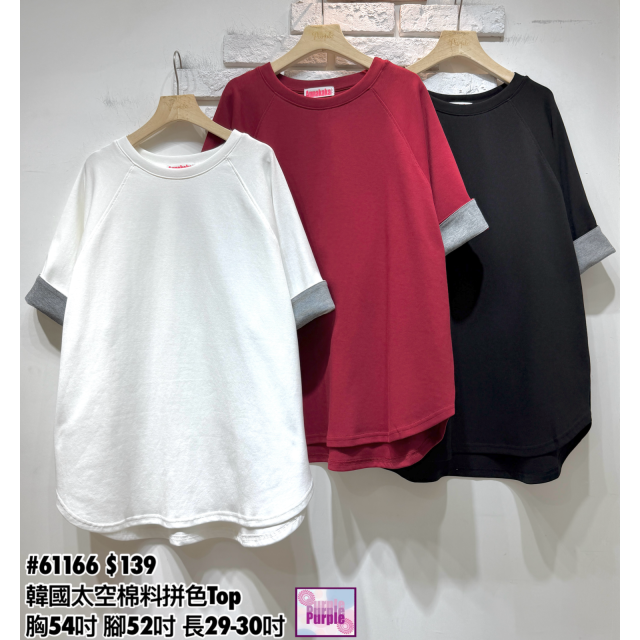 (訂貨約20天) #61166 韓國太空棉料拼色Top (胸54吋 腳52吋 長29-30吋)