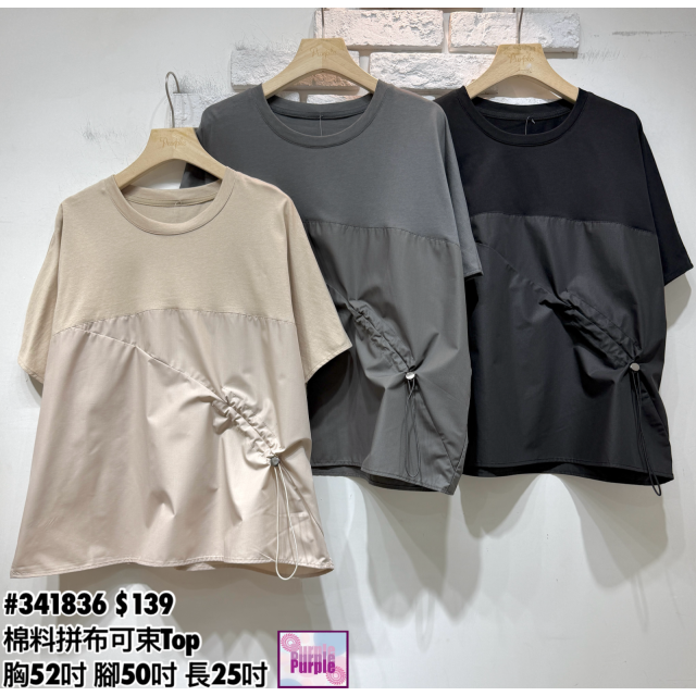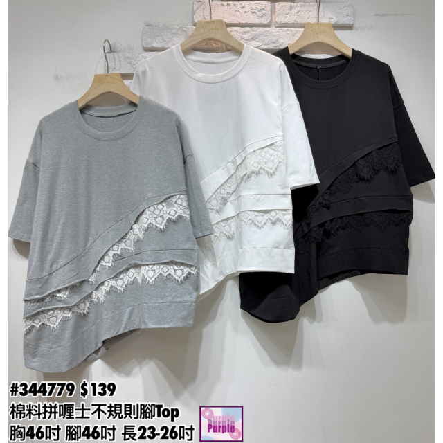 (訂貨約20天) #344779 棉料拼喱士Top (胸46吋 腳46吋 長23-26吋)