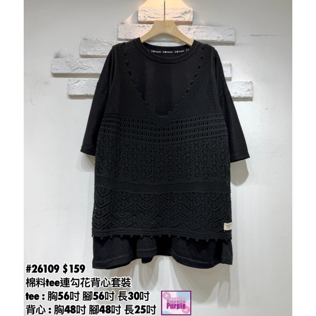 (訂貨約20天) #26109 棉料tee連勾花背心套裝 (tee : 胸56吋 腳56吋 長30吋/ 背心 : 胸48吋 腳48吋 長25吋)