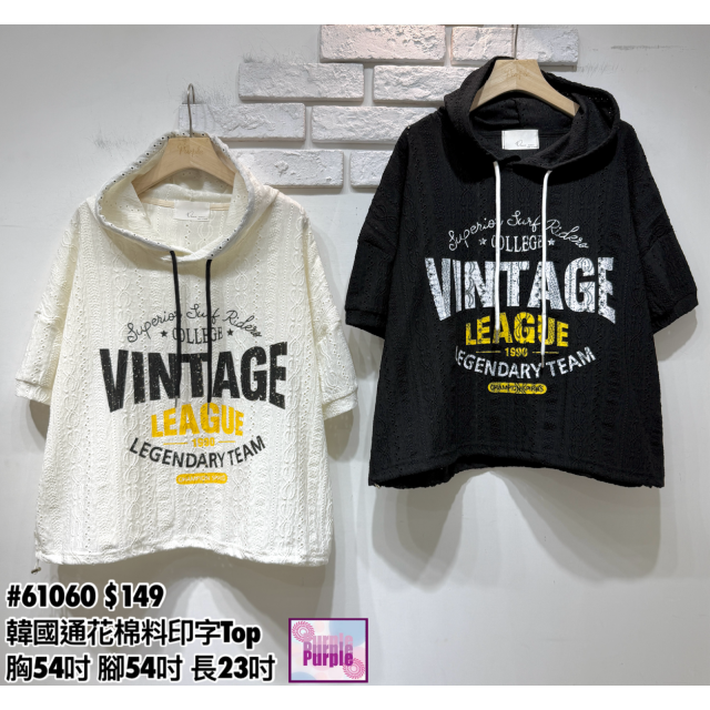 (訂貨約20天) #61060 韓國通花棉料印字Top (胸54吋 腳54吋 長23吋)