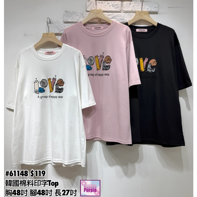 (訂貨約20天) #61148 韓國棉料印字Top (胸48吋 腳48吋 長27吋)