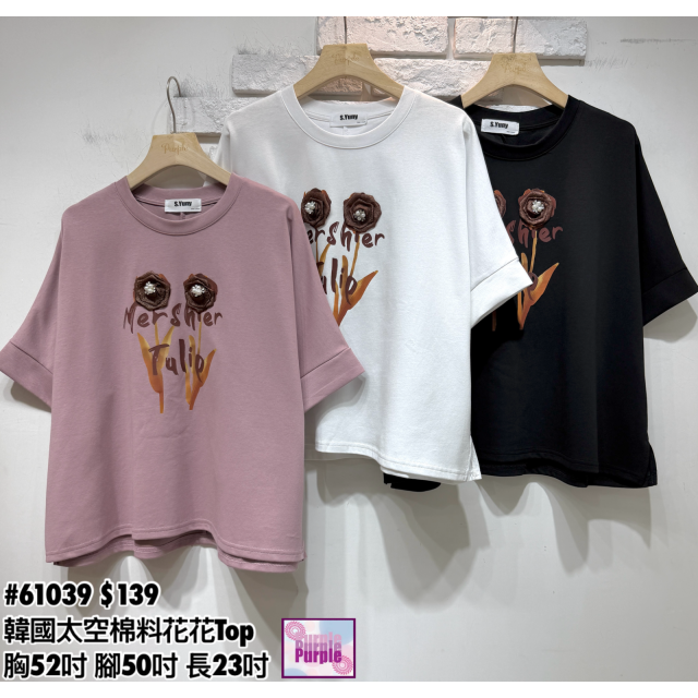 (訂貨約20天) #61039 韓國太空棉料花花Top (胸52吋 腳50吋 長23吋)