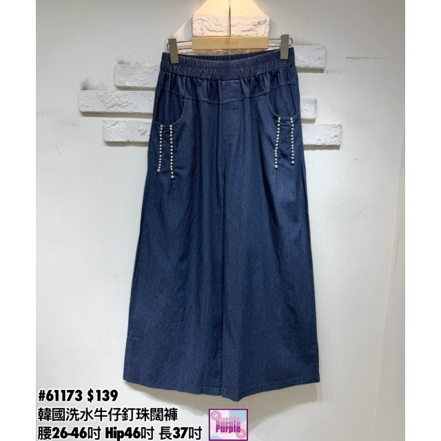 (訂貨約20天) #61172 韓國洗水牛仔料闊褲褲 (腰26-44吋 Hip48吋 長37吋)