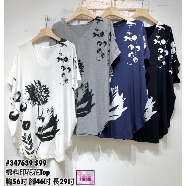 (訂貨約20天) #347639 棉料印花花Top (胸56吋 腳46吋 長29吋)