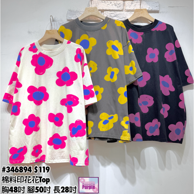 (訂貨約20天) #346894 棉料印花花Top (胸48吋 腳50吋 長28吋)