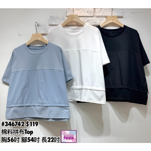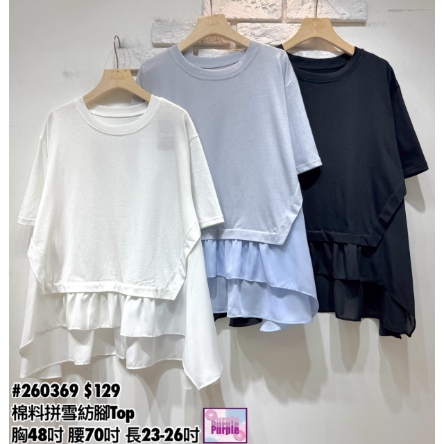 (訂貨約20天) #260369 棉料拼雪紡腳Top (胸48吋 腰70吋 長23-26吋)