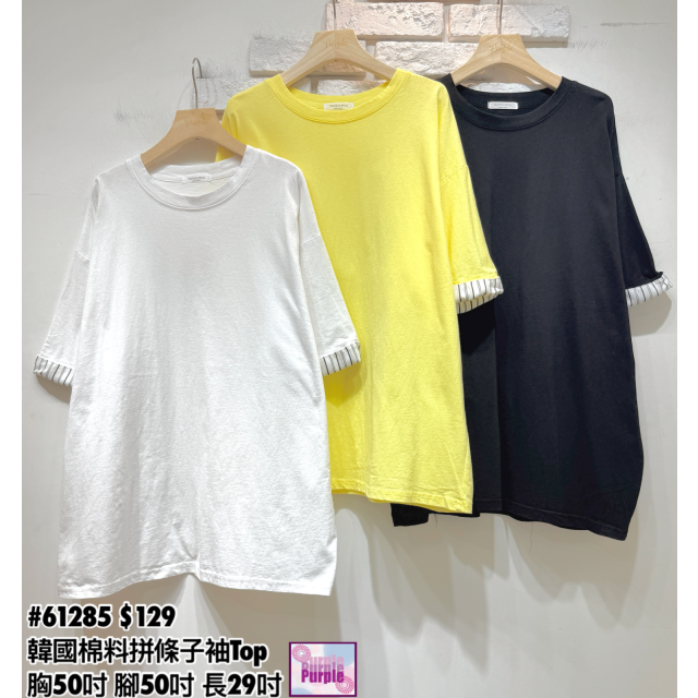 (訂貨約20天) #61285 韓國棉料拼條子袖Top (胸50吋 腳50吋 長29吋)