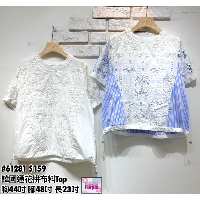 (訂貨約20天) #61281 韓國通花拼布料Top (胸44吋 腳48吋 長23吋)
