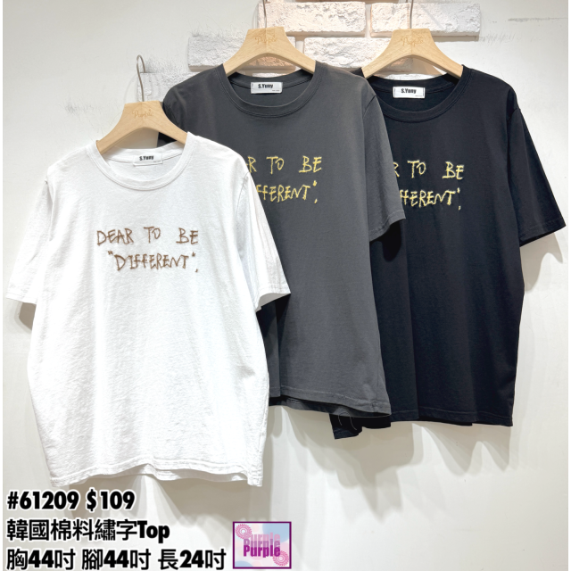 (訂貨約20天) #61209 韓國棉料刺繡英文字Top (胸44吋 腳44吋 長24吋)
