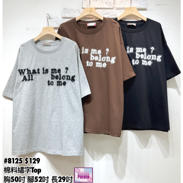 (訂貨約20天) #8125 棉料繡字Top (胸50吋 腳52吋 長29吋)