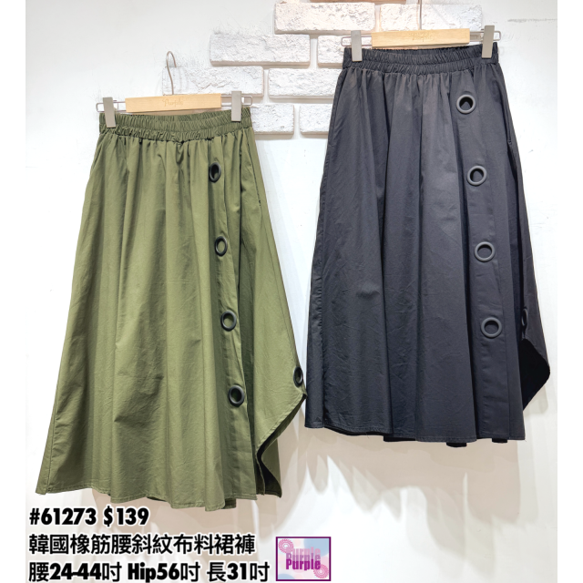 (訂貨約20天) #61273 韓國橡筋腰斜紋布料裙褲 (腰24-44吋 Hip56吋 長31吋)