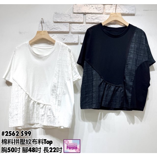 (訂貨大約20天) #2562 棉料拼壓紋布料Top (胸50吋 腳48吋 長22吋)
