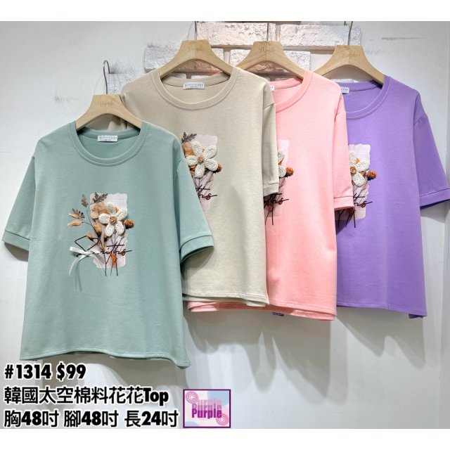 (訂貨大約20天) #1314 韓國太空棉料花花Top (胸48吋 腳48吋 長24吋)