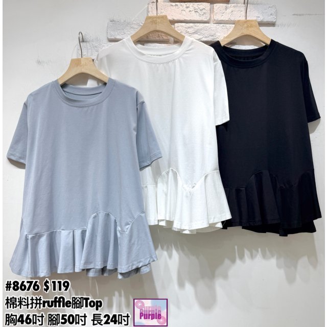 (訂貨大約20天) #8676 棉料拼ruffle腳Top (胸46吋 腳50吋 長24吋)