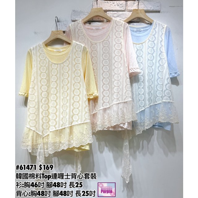 (訂貨大約20天) #61471 韓國棉料Top連喱士背心套裝 (衫:胸46吋 腳48吋 長25吋/背心:胸48吋 腳48吋 長25吋)