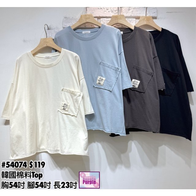 (訂貨大約20天) #54074 韓國棉料Top (胸54吋 腳54吋 長23吋)