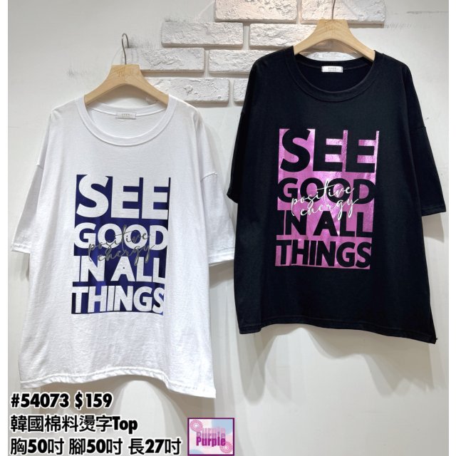 (訂貨約20天) #54073 韓國棉料燙字Top (胸50吋 腳50吋 長27吋)
