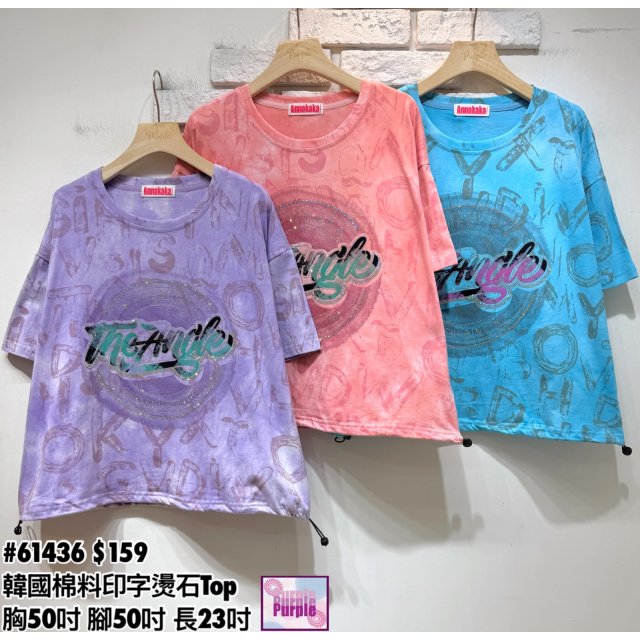 (訂貨約20天) #61436 韓國棉料印字燙石Top (胸50吋 腳50吋 長23吋)