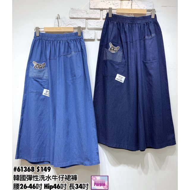(訂貨約20天) #61368 韓國橡筋腰彈性洗水牛仔裙褲 (腰26-46吋 Hip46吋 長34吋)