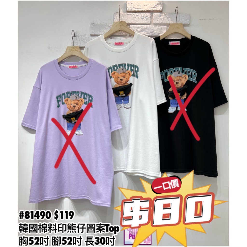 (現貨) #81490 韓國棉料印熊仔圖案Top (胸52吋 腳52吋 長30吋)