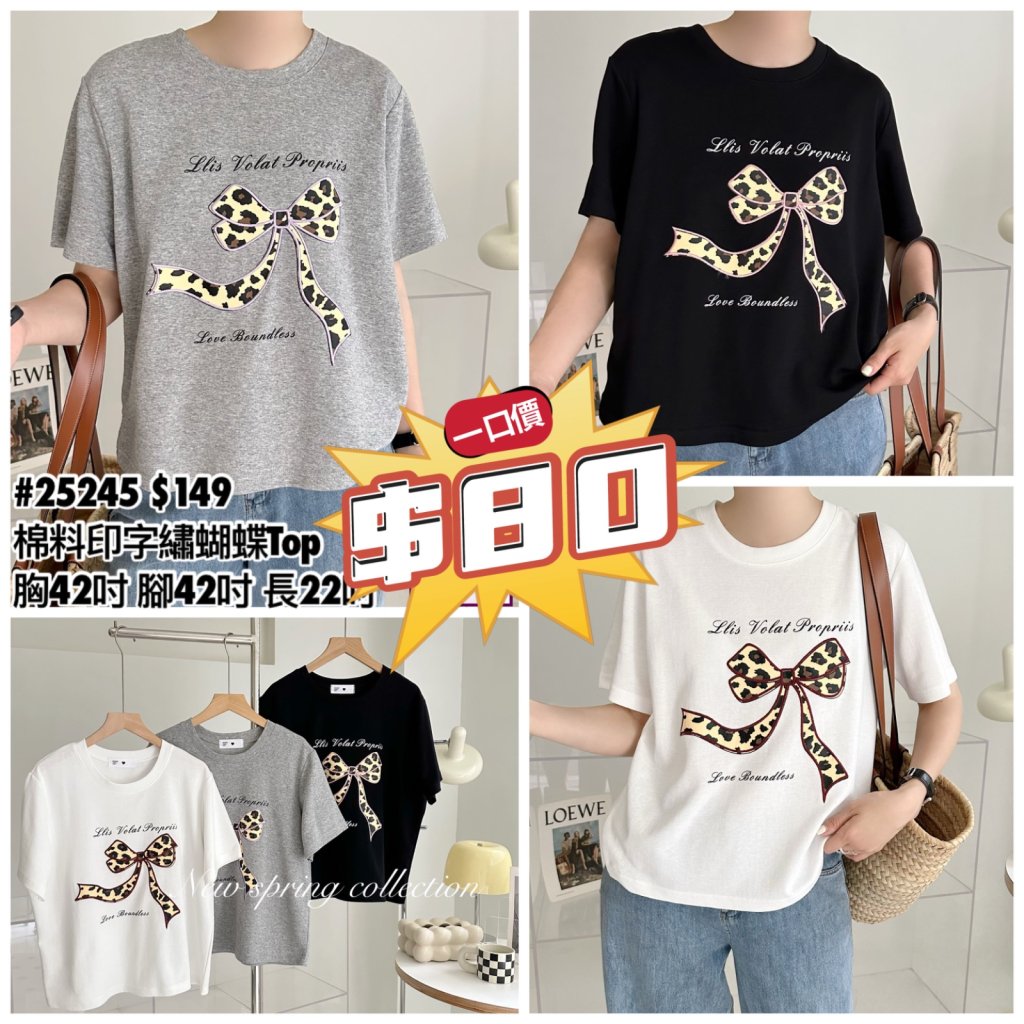 (現貨) #25245 BONNIE棉料印字繡蝴蝶Top (胸42吋 腳42吋 長22吋)