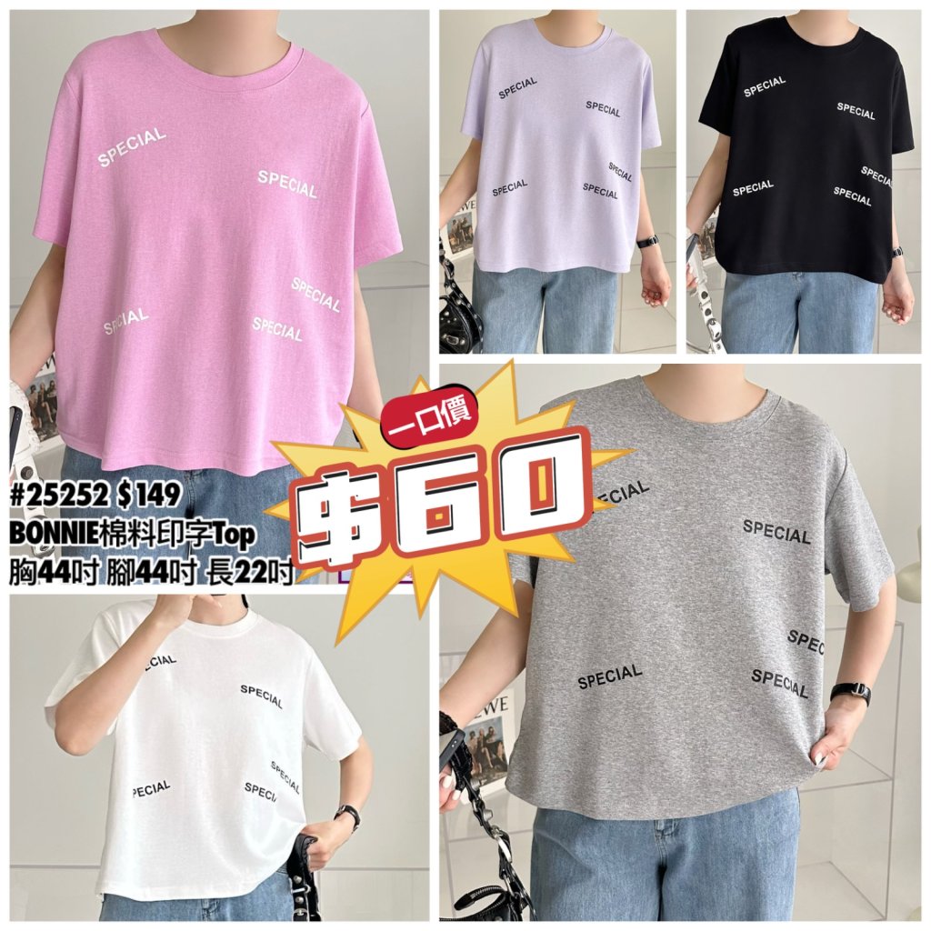 (現貨) #25252 BONNIE棉料印字Top (胸44吋 腳44吋 長22吋)