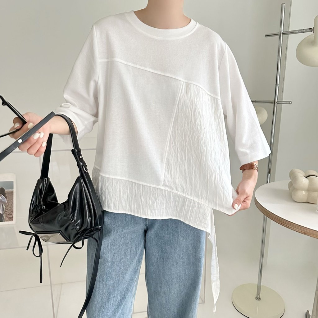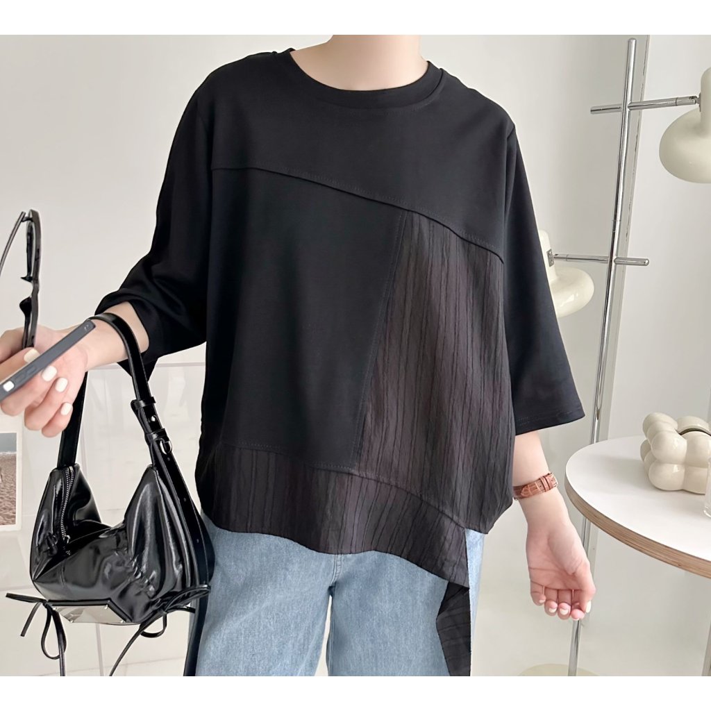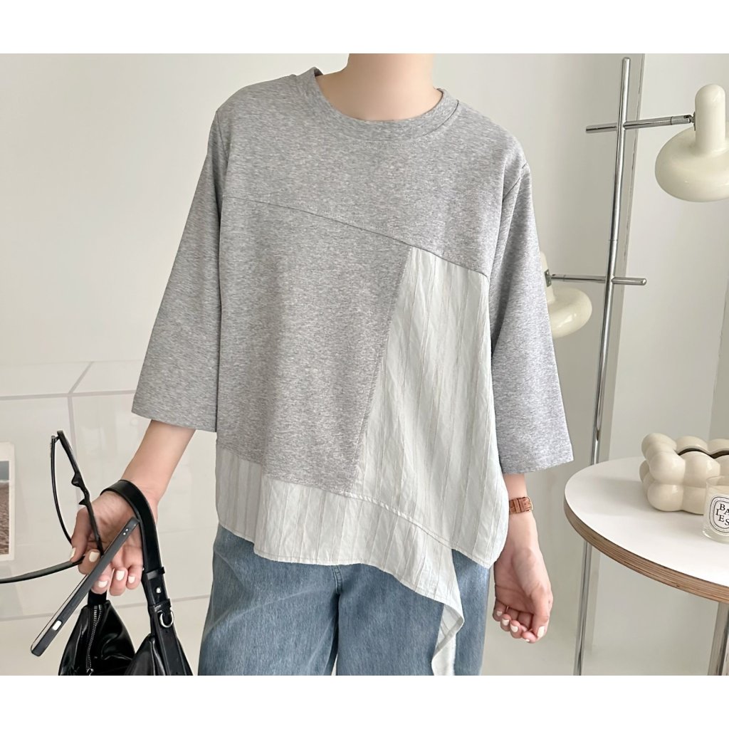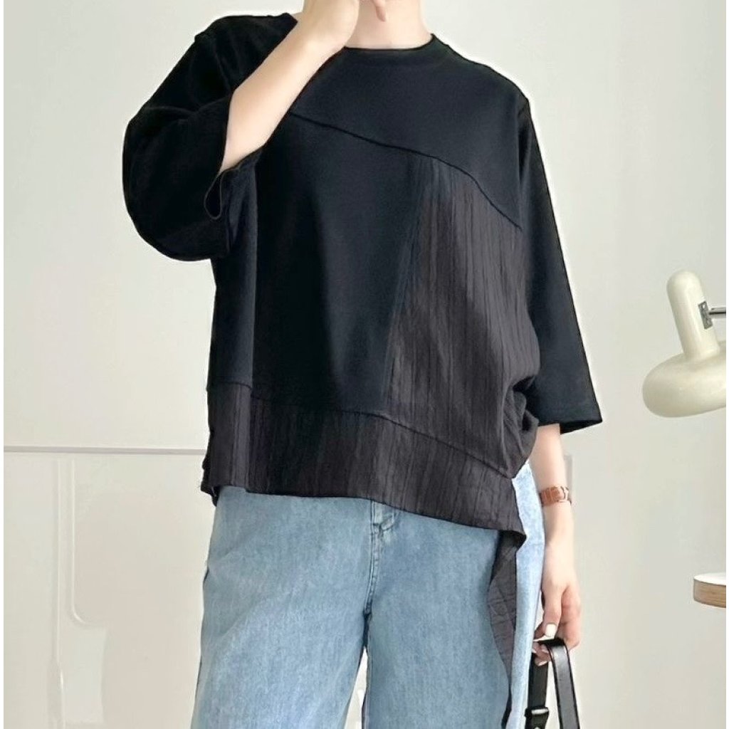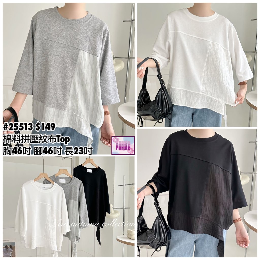 (現貨) #25513 BONNIE棉料拼壓紋布Top (胸46吋 腳46吋 長23吋)