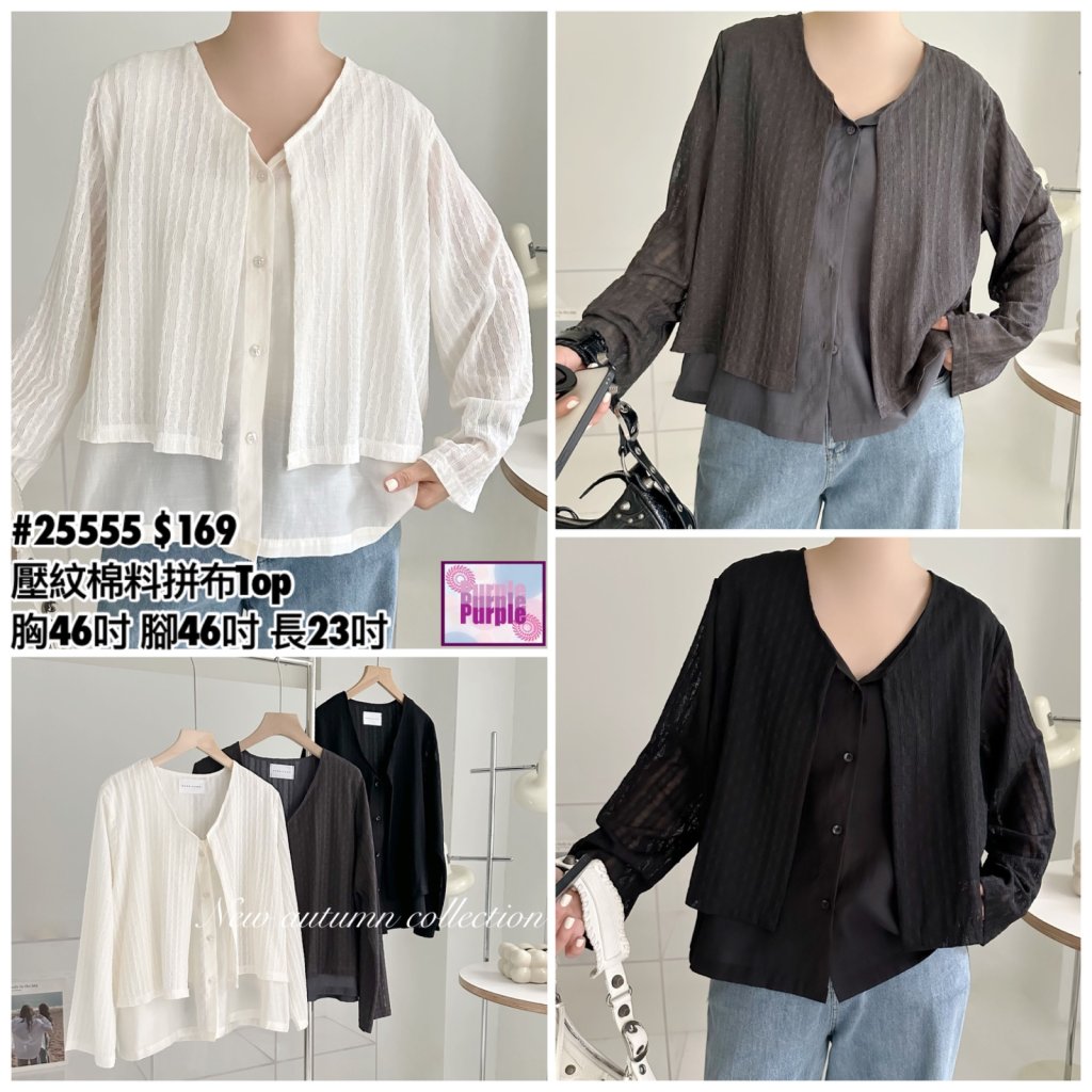 主頁 (現貨) #25555 BONNIE壓紋棉料拼布Top (胸46吋 腳46吋 長23吋)