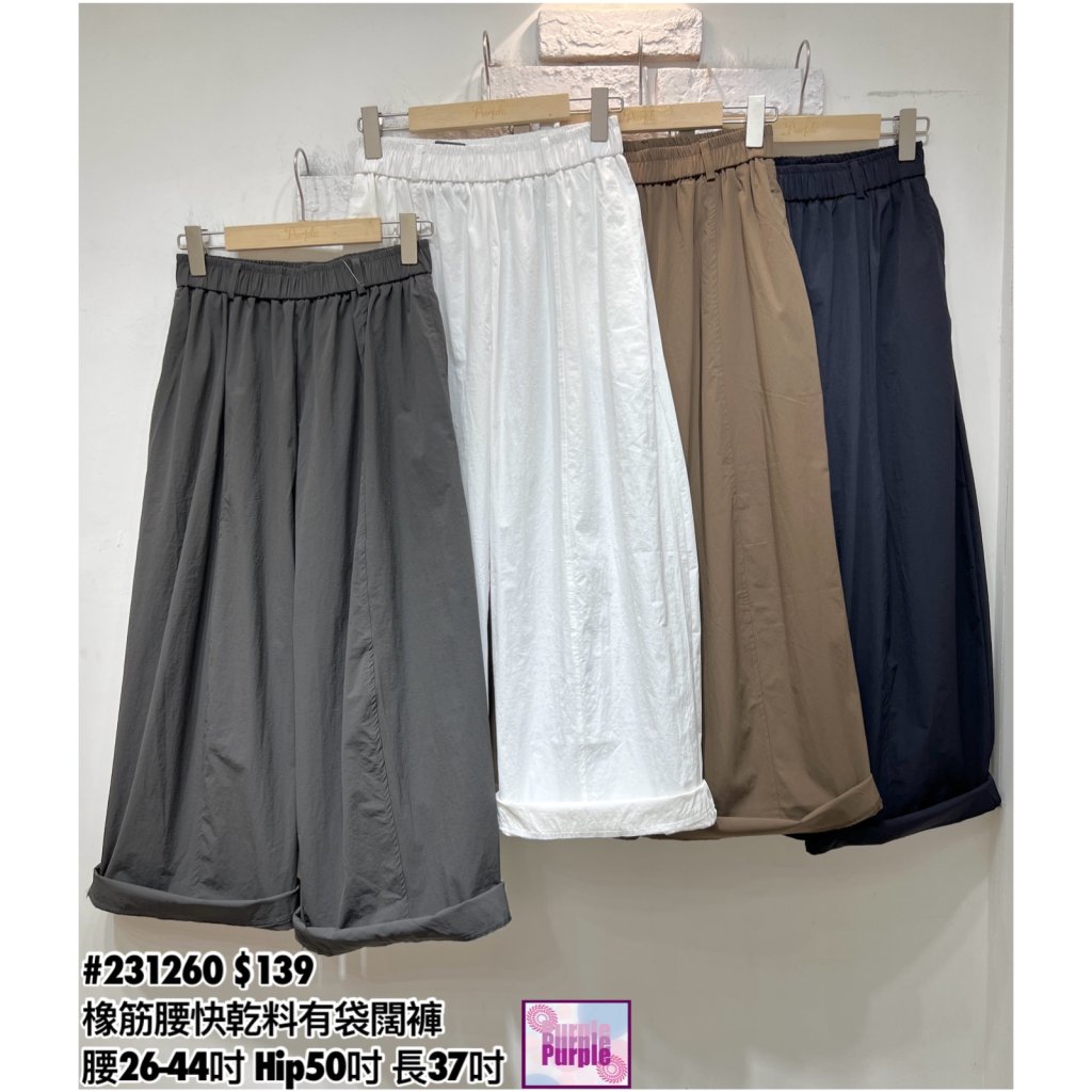 (現貨) #231260 橡筋腰快乾料有袋闊褲 (腰26-44吋 Hip50吋 長37吋)
