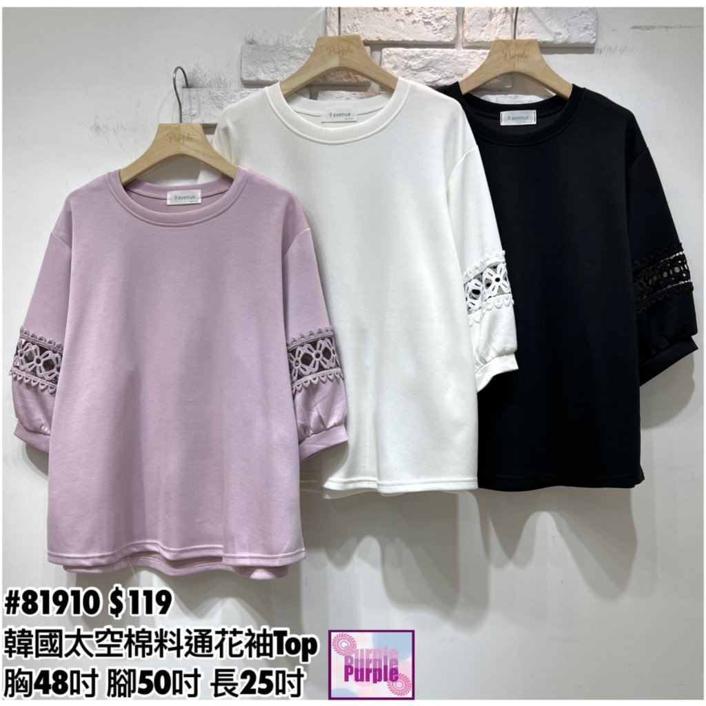 (現貨) #81910 韓國太空棉料拼通花袖Top (胸48吋 腳50吋 長25吋)