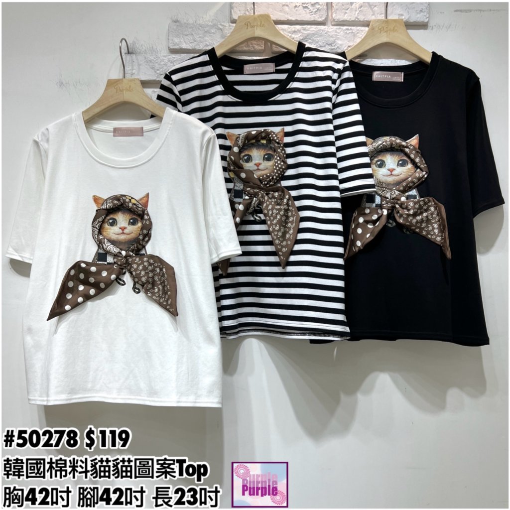 主頁 (現貨) #50278 韓國棉料貓貓圖案Top (胸42吋 腳42吋 長23吋)