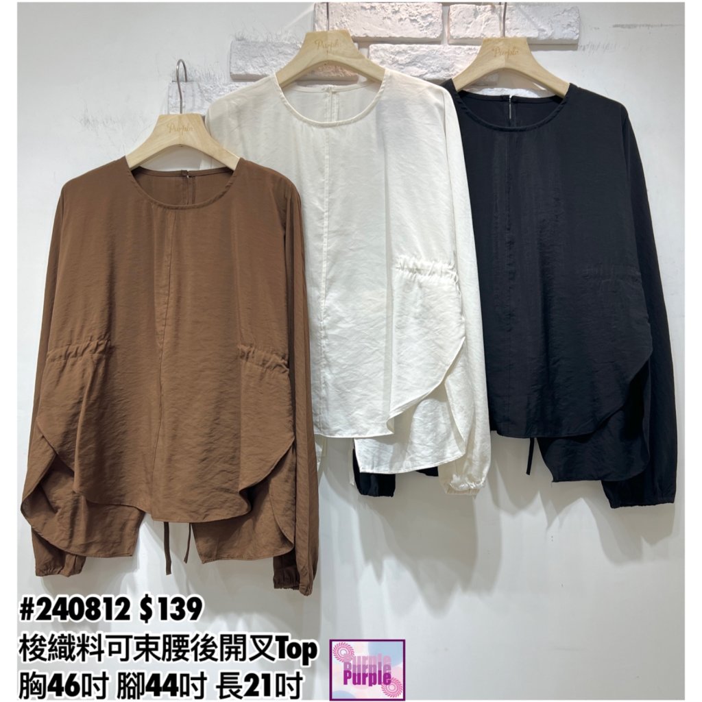 (現貨) #240812 梭織料可束腰後開叉Top (胸46吋 腳44吋 長21吋)