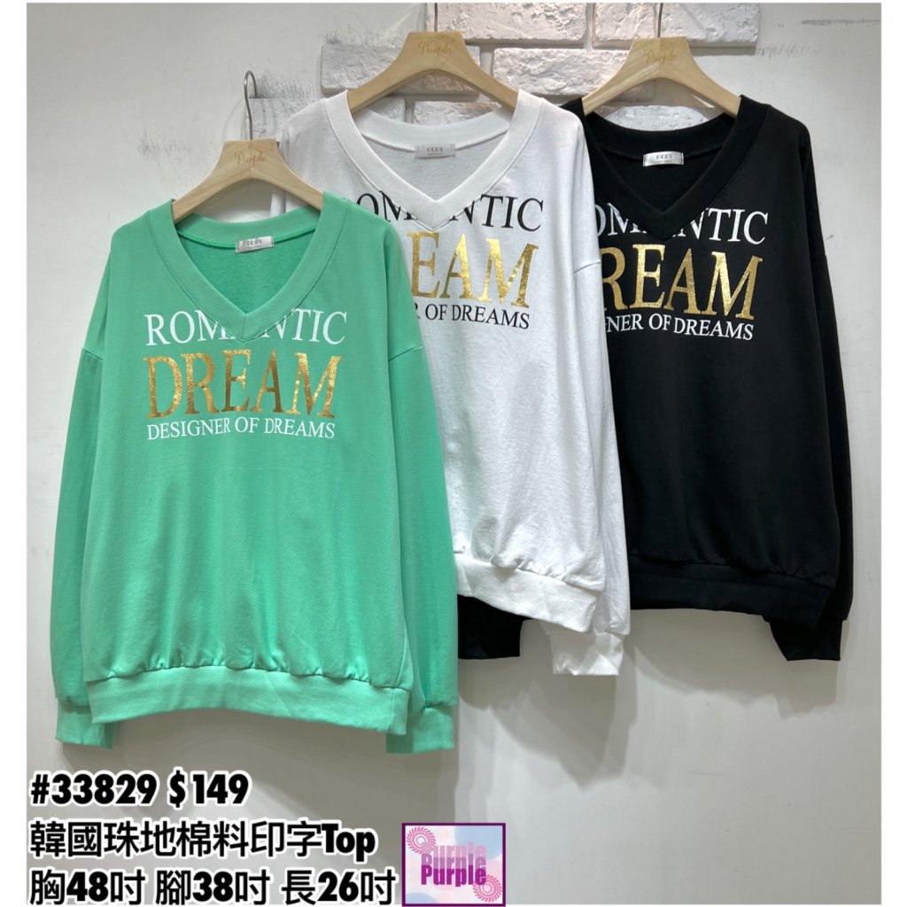 (現貨) #33829 韓國珠地棉料印字Top (胸48吋 腳38吋 長26吋)